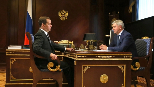 Дмитрий Медведев поинтересовался у Александра Гусева, как в регионе обстоят дела с уборкой урожая. Глава региона доложил, что на данный момент убрали порядка 15% посевных площадей. Александр Гусев отметил, что из-за погодных условий 2018 год не будет таким же урожайным, как прошлый.