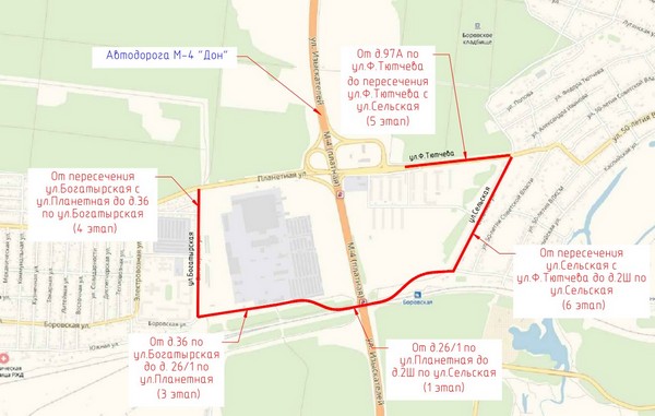 Первые два этапа это по сути строительство новой дороги, которой ранее не было. Проходить она должна вдоль железнодорожных путей под трассой М4 и будет соединять микрорайоны Отрожка и Боровое.