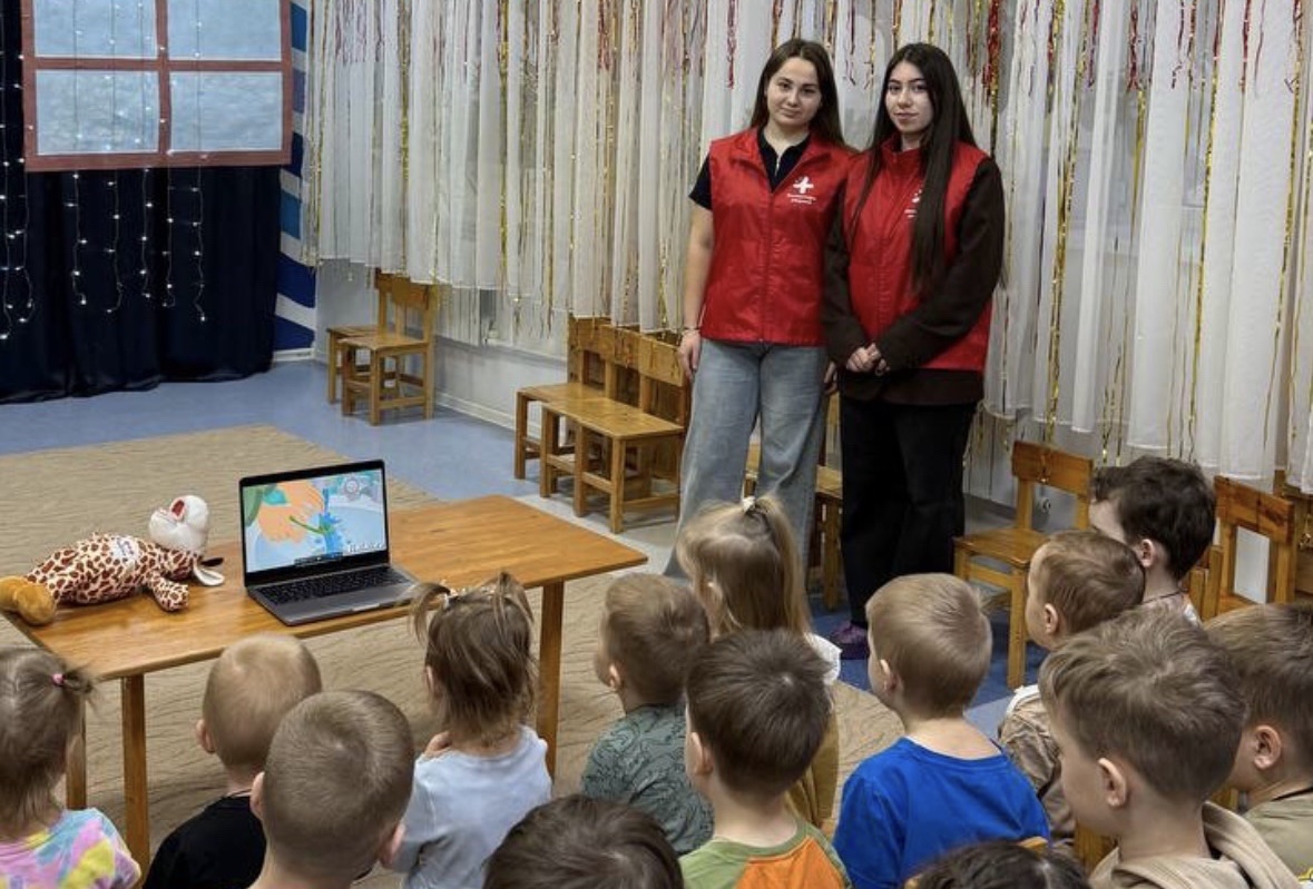 В детском саду «Холмы и горы» состоялся обучающий семинар по уходу за зубами и деснами. В рамках семинара волонтеры-медики провели для детей познавательную беседу. В доступной форме им рассказали о важности чистки зубов, а также о "кариозных монстриках".