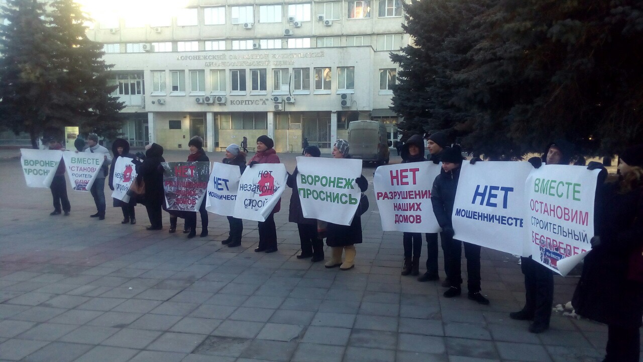 22 ноября рядом со зданием Воронежской областной думы собралось около двух десятков человек с плакатами. Пикет стал, по сути кульминацией противостояния общественности и строителей ООО «Реста» вокруг площадки точечной застройки по улице Марата, 2а.
