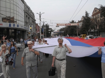 Можно, конечно, расценивать шествие с огромным триколором и в качестве патриотического мероприятия. Однако известно, что и в праве на патриотизм российским демократам тоже отказано.